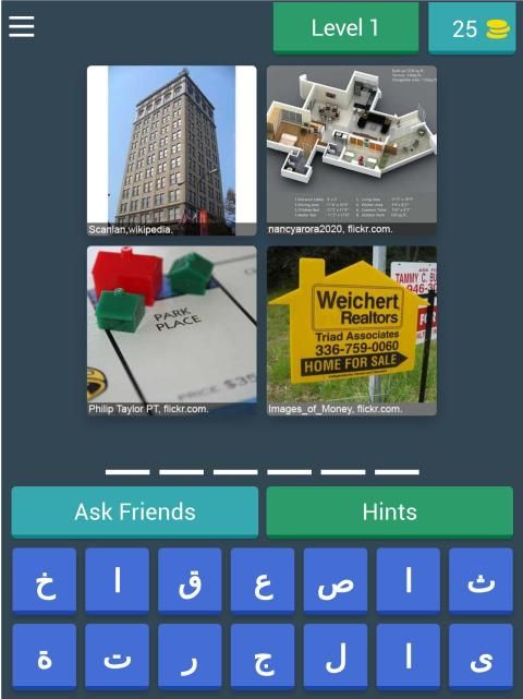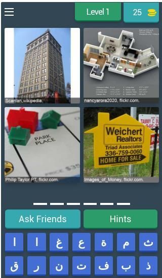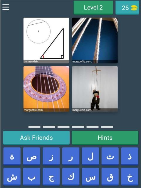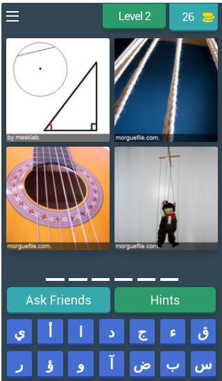 1- تتكون المرحلة الواحدة من أربعة صور تكون مشتركة في ما بينها بالحل عبر كلمة واحدة