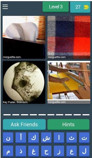 * مميزات لعبة اربع صور كلمة واحدة: