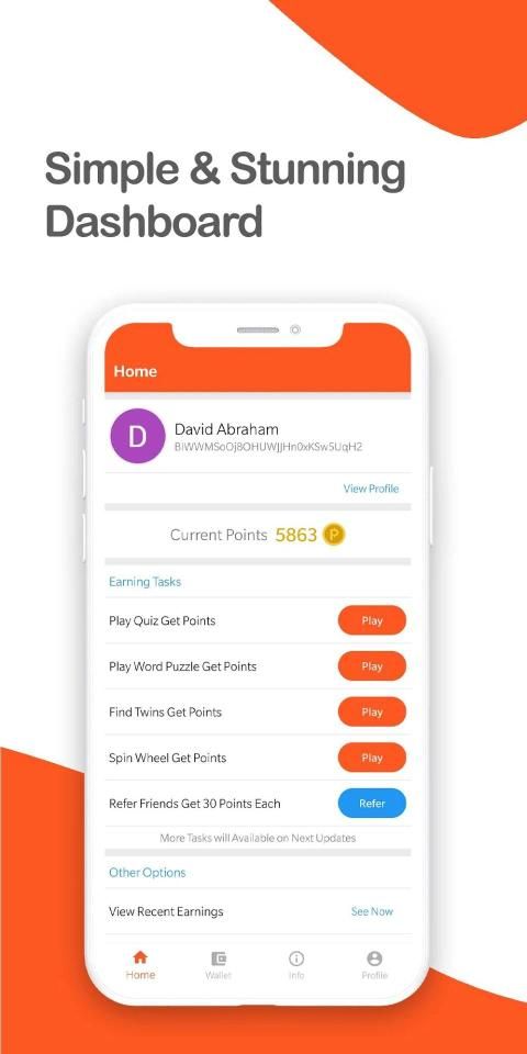 बिटकॉइन ऐप ने उपयोगकर्ताओं को अपने बिटकॉइन वॉलेट पते को दर्ज करके आसानी से अपने बिटकॉइन वॉलेट में पहेलियाँ, गेम और दोस्तों को संदर्भित करके अपने अर्जित अंक वापस लेने में सक्षम किया।