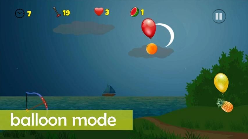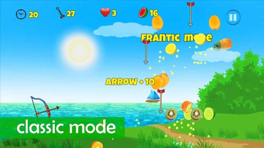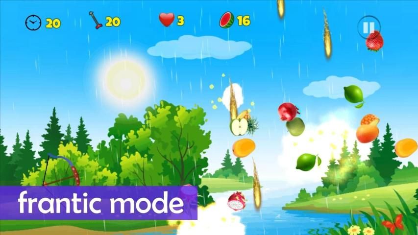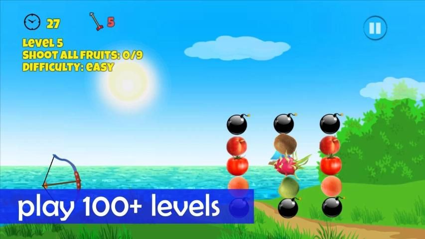 - Pull, aim and shoot fruit with your archery