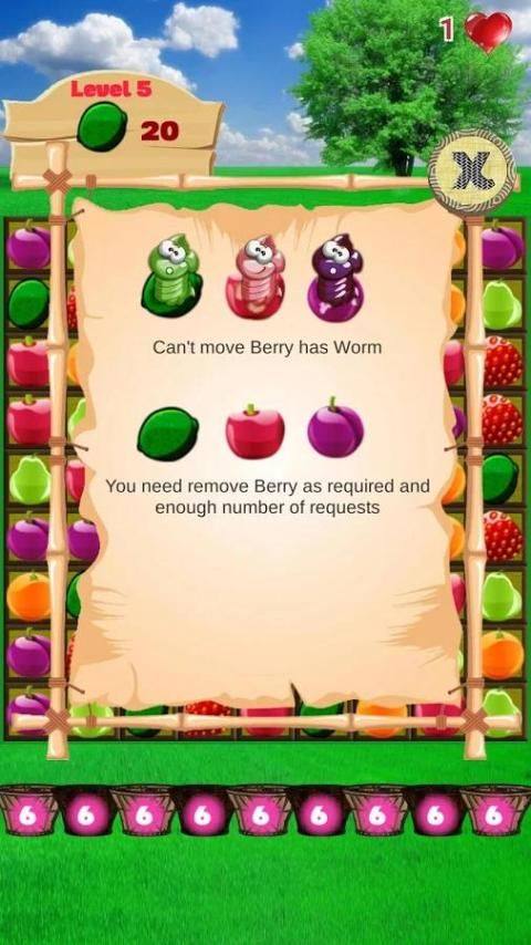 कई विभिन्न स्तरों के साथ फल बज़। प्रत्येक स्तर पर अलग अलग अभियानों है।