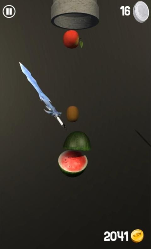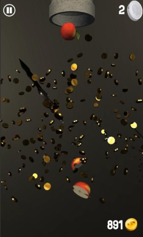 The fruits are being dropped in the air and you are given a sword. Time the swing of the sword in such a way that you can chop the fruit in half.