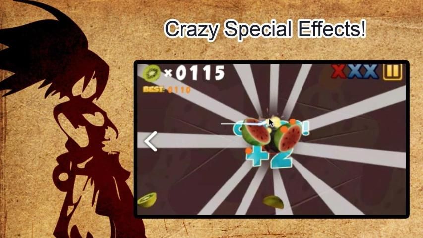यह स्क्रीन पर फेंक दिया है के रूप में फल स्लाइस। आप यह आसान है, लेकिन लगता है एक पंक्ति में चार टुकड़ा करने की क्रिया कोशिश कर सकते हैं! बम टुकड़ा करने के लिए नहीं सावधान रहना होगा, या आप एक जीवन खो देंगे!