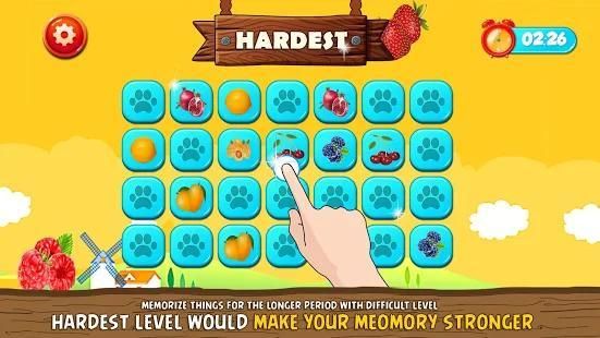 Fruits Matching Pairs Memory Game is a free brain puzzle game that allows you to browse 6 different levels, each of which has its own set of challenges. This game will give you an excellent brain training exercise. It's specially optimized for both phones and tablets!