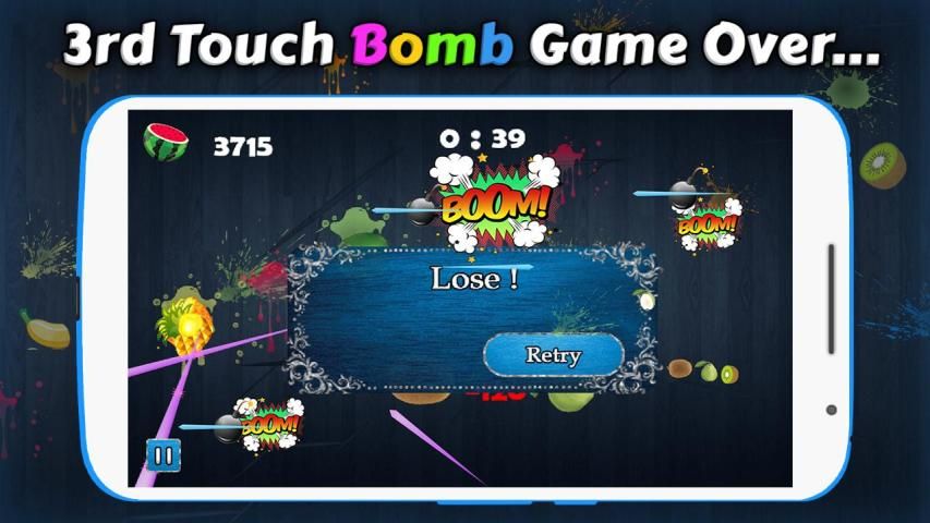 अपने हाथ में उंगली पकड़ो और हवा में स्वीप फल में कटौती करने की ओर और स्कोर मिला है। जब आप एक बम में कटौती, तो आप अपने स्कोर को खो दिया जाएगा, और अपवादभूत प्रभाव का आनंद लें