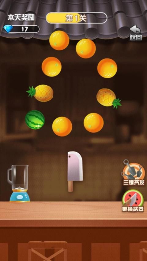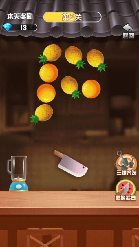 达到关卡目标即闯关成功,可获得额外的金币奖励。一旦飞刀没有射中水果,则游戏结束。