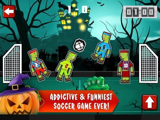 अपने पसंदीदा ज़ोंबी टीम चुनें और एक प्रसिद्ध हेलोवीन स्टार फुटबॉल खिलाड़ी के रूप में खेलने। अल्ट्रा तेजी से 2 खिलाड़ी खेल खेलने के लिए और महान सेनानी भौतिकी। प्रतियोगी शैली, पूरी दुनिया में अपने विरोधियों को चुनौती! पेनल्टी शूटआउट में अपने तंत्रिका पकड़ो! अन्यथा विजयी गोल के लिए लड़ो, तुम खो देंगे।
