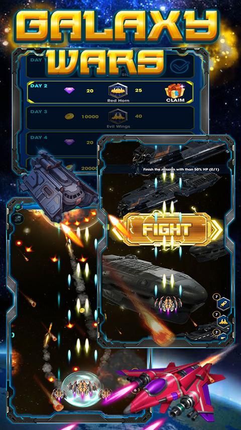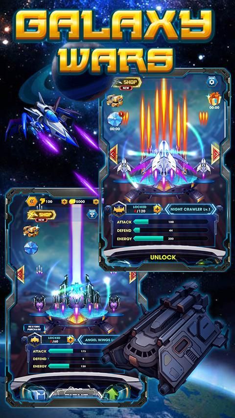 The journey ahead is indeed a challenger but lots of surprising things are waiting to be explored. You're in control of more than 10 powerful battle ship each with its own special skills. Advancing to the next rank with each ship will give you special bullets and abilities, collecting card through every level to unlock new rank and space ship.