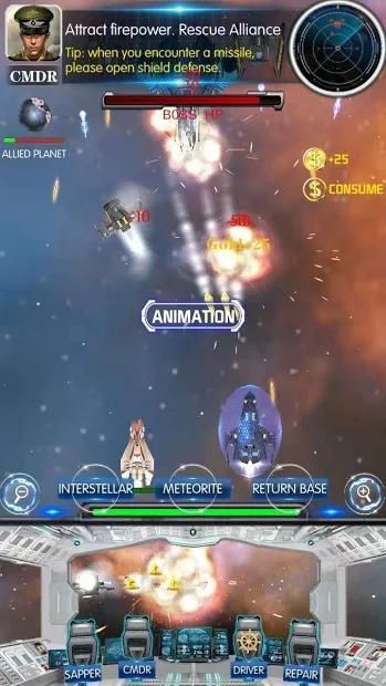 In the game, adopt the gold coin consumption mode, the player is self-sufficient, buys the weapon equipment in the game. In addition to conventional common attacks, there are also a variety of skills in the cockpit, such as missiles, lasers, shields, maintenance, calling spacecraft, interstellar transmission and so on.