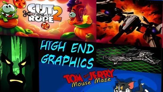 ** High end graphics: Cut the rope, Bomber friends, king of thieves, Intergalactic Battleship etc.