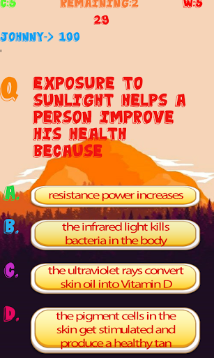 General Knowledge Test is a fun app which is developed for testing your general knowledge. This app provides its user with the best general Knowledge quizzes related to the fields of physics, chemistry, zoology, geology, astronomy etc. Designed in such a way, So that user knowledge, dexterity, intelligence, Logic, perceptions and reasoning abilities could be evaluated. This app helps user to sharpening their knowledge and senses, help them to prepare for exams or tests which are based on general knowledge and helps them to increase their knowledge and memory. This app targets people of all ages, even children could enjoy tests created by this app and could enhance their aptitude and General Knowledge. This app could be used for the preparation of Universities quizzes, entry tests, civil services and armed forces logical tests. This app contains cool features like coloring the buttons green if the answer is correct otherwise coloring the button red because the answer is wrong. It provides multi-player functionality which enables you to play against the players around the world. It contains good graphics and less Ads. This app is extremely efficient, it is developed in such a way so that it could run smoothly in any device..