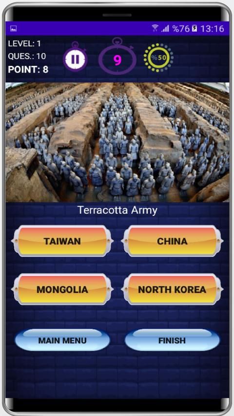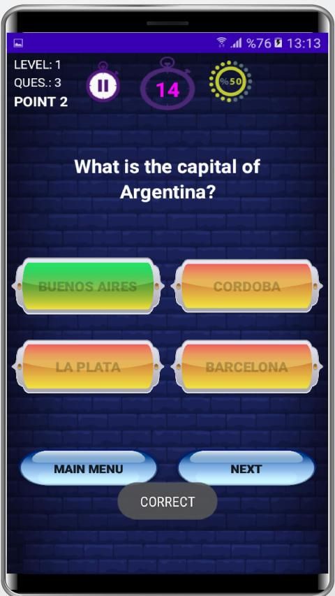 Geography Quiz Game is a fun game for all fans and learners of geography. Download this free quiz game and answer geography questions.