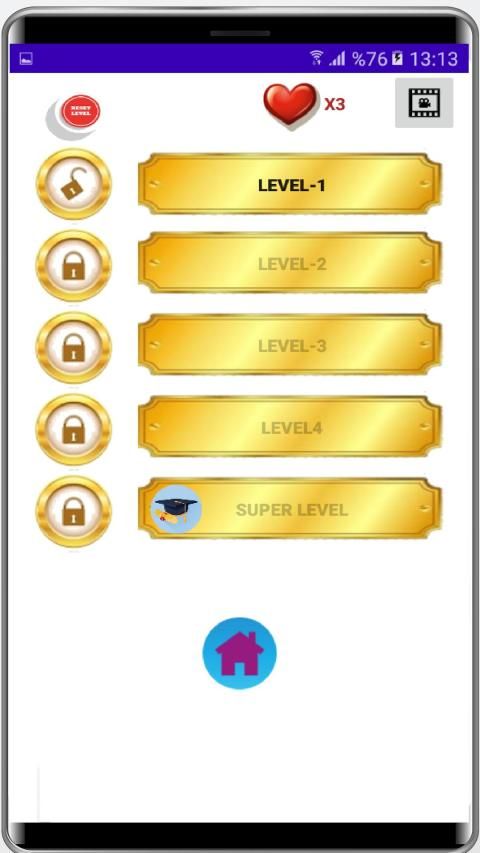 * स्तर अनलॉक करने के लिए स्तर