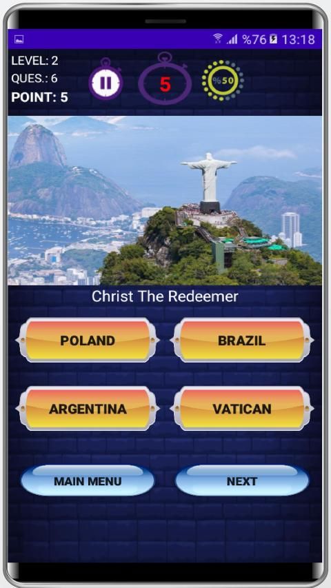Geograpy quiz game will help you learn the countries all over the world, flags of countries, capital cities and famous landmarks, iconic places of countries.