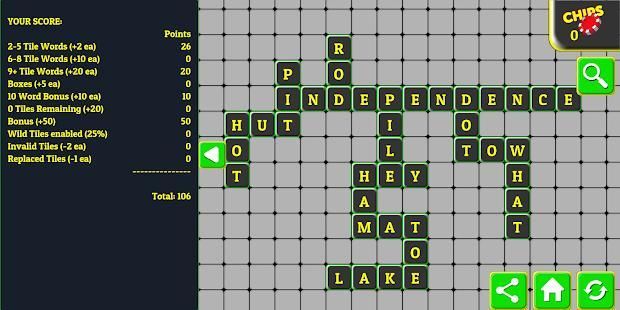 • रैंडम - आप क्या टाइल अगले आ रहा है कभी पता नहीं है, फिर भी कई अलग अलग रणनीतियों स्कोर करने के लिए उच्च रहे हैं। बक्से ... 10 शब्द ... 9 पत्र शब्द ... बोनस शब्द ... जंगली टाइलें ... क्या अपनी रणनीति है?