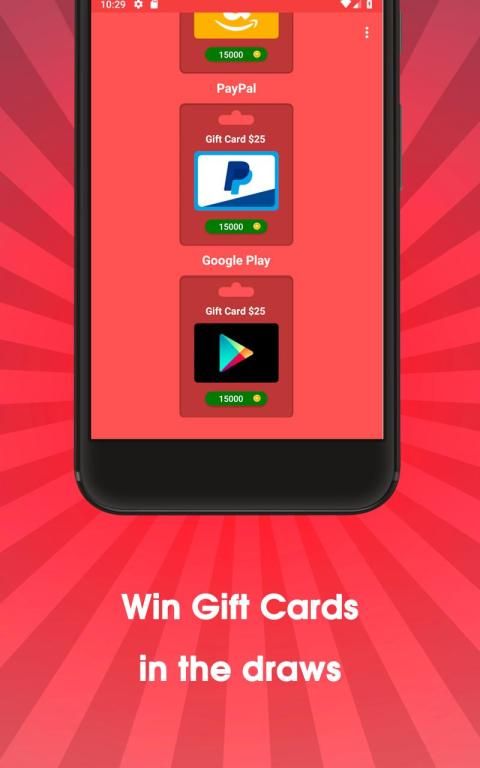 ड्रा भागीदारी के लिए अपने सिक्कों को भुनाएं। हम ड्रा द्वारा प्रति दिन एक निश्चित राशि उपहार कार्ड भेजते हैं। यदि आप जीतते हैं तो आपको वांछित उपहार कार्ड प्राप्त होगा। आसान! ध्यान दें: जैसा कि यह एक ड्रा / रैफल है, केवल विजेताओं को उपहार कार्ड प्राप्त होंगे।