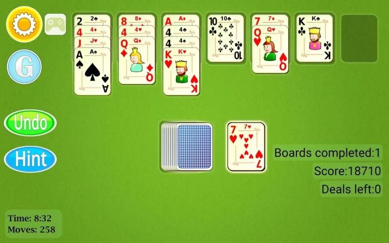 ✓ आप नए कार्ड केवल 4 बार निपटाया जाता है और उसके बाद खेल समाप्त होता है। यदि आप एक बोर्ड साफ़, तो आप निशुल्क सौदा प्राप्त करते हैं।