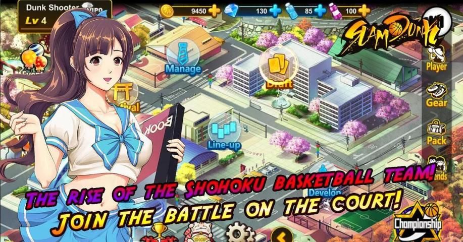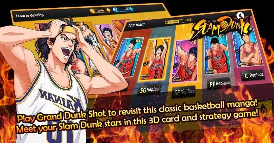 Grand Dunk Shot, inspired by the best-selling Japanese manga, is an Android online game that merges the best elements of the classic card game and RPG game. All the dunk shooters, Hanamichi Sakuragi, Kaede Rukawa, Hisashi Mitsui and Akira Sendoh, will be in action in the game!
