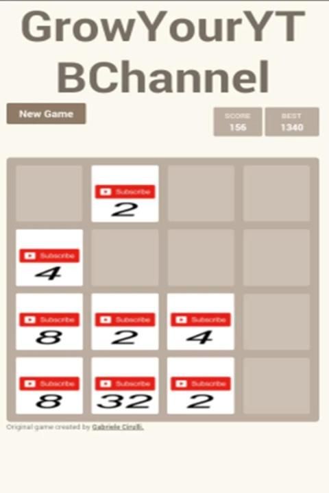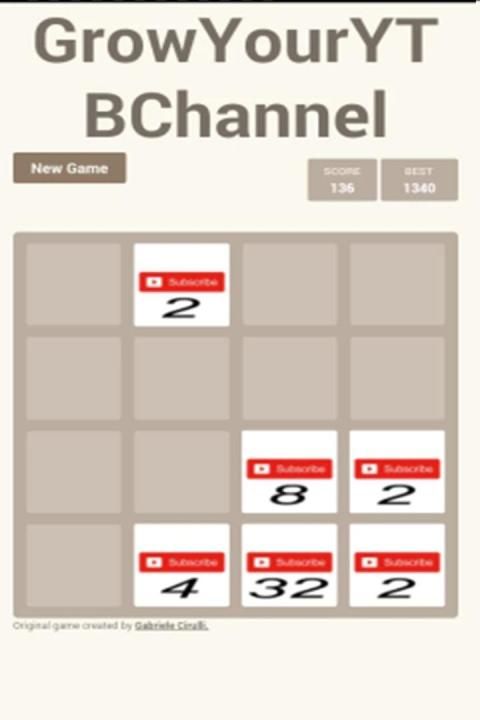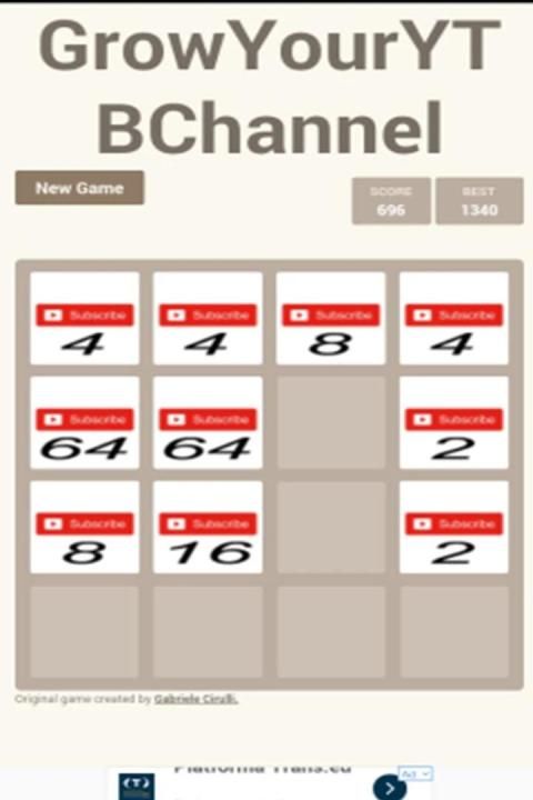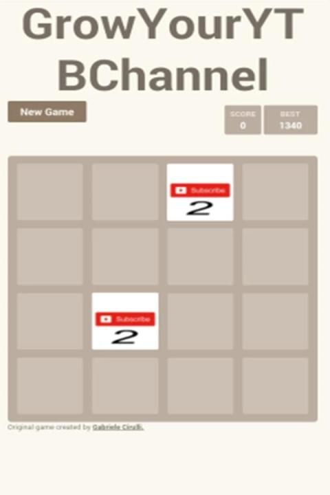Grow Your YouTube Channel is a small game where you must grow in subscribers by combining the numbers, the game is a 2048 classic game modified! Try to reach as many subscribers as possible to make a bigger score and then get your friends to see how good they are to you or how good you are!