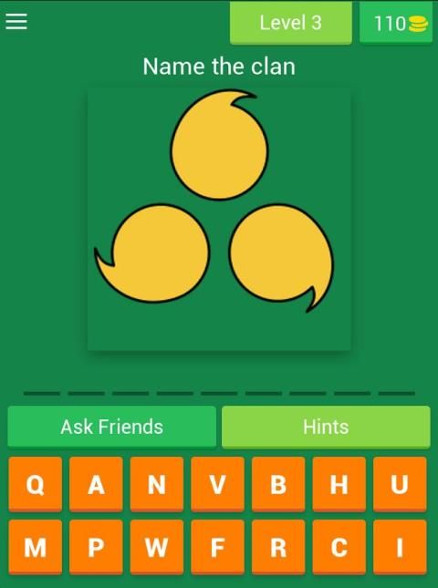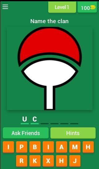 एक सुराग के रूप में चित्र का उपयोग कर Shinobi कुलों लगता है कि आप नारुतो और Boruto (नारुतो अगला पीढ़ियों) मूवी में कुलों के नाम अनुमान लगाने के लिए। आप उपलब्ध स्थान जो नारुतो और Boruto मूवी में कुलों का नाम है पर सही पत्र लगाने से प्रत्येक स्तर पारित करने के लिए सवाल का जवाब देने की है। आप सभी गुटों नारुतो और Boruto मूवी इस अनुमान Shinobi कुलों के भीतर अनुमान लगा सकते हैं ??