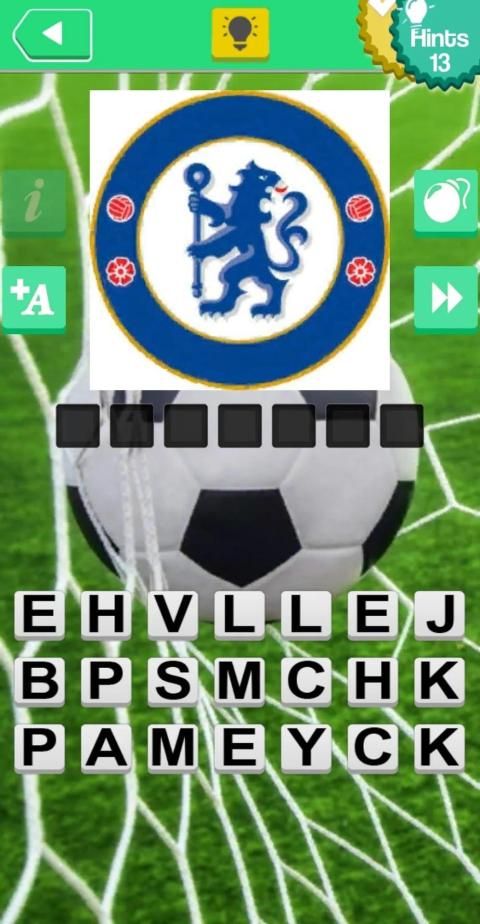 *You have to answer the question to pass each level by locating right letters at the available space which is football cub's name.*