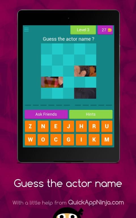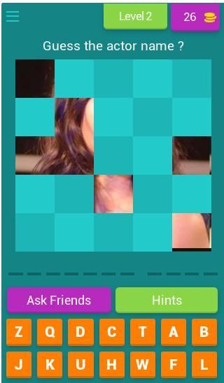 You get coins which help you to get the hint at which height you have knowledge of cinema. Game Guess Name Quiz is designed to test your knowledge. For more fun you can compete with your friends in the film actor quiz. You can plan a competition arrangement for a while or simply go through the whole quiz and check at the end which scored the most points in actor quiz games.