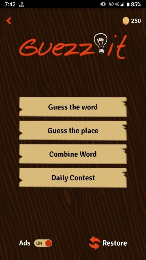 GuezzIt में सामान्य शब्दों के लिए तीन स्तर हैं, मध्यम आपको लगता है कि और कठिन स्तर आपके दिमाग को परीक्षण करने के लिए डालता है!