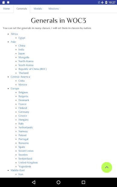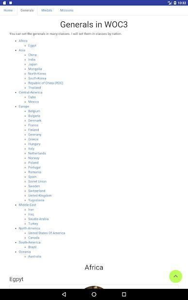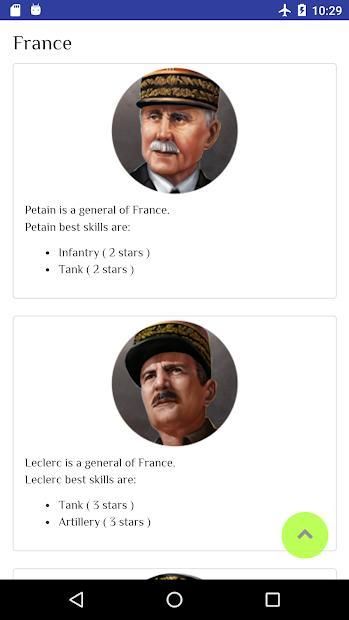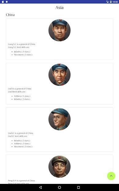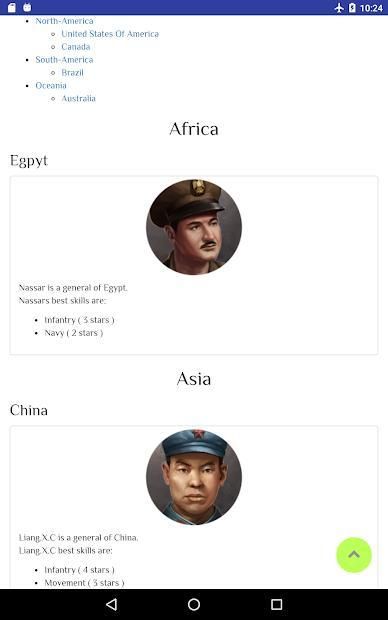 Here can you find the info of the generals of World Conqueror 3 ranked by nation.