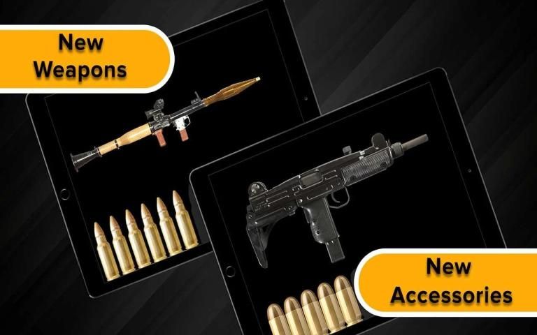 गन हथियार सिम्युलेटर यथार्थवादी ध्वनि प्रभाव के साथ एक app और पिस्तौल, एके -47, handguns, बंदूकें, miniguns, उप मशीनगन, राइफल, स्नाइपर राइफल, लाइट मशीनगन, ग्रेनेड की तरह सबसे लोकप्रिय बंदूकों से कुछ का एक बड़ा चयन है लांचर, चाकू।
