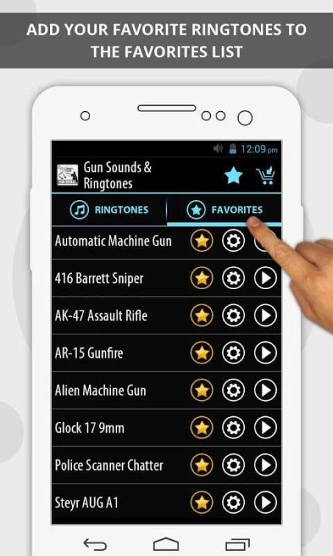 • अपने पसंदीदा बंदूक लगता है और पसंदीदा सूची में रिंगटोन जोड़ें।