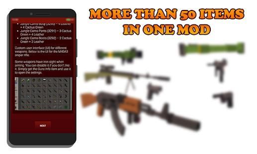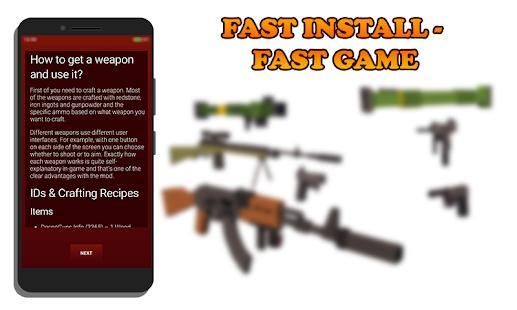 Hello, dear player! AK47s, rocket launchers, grenades and glocks are just few of the existing guns in what today is the most advanced weapons mod specialy for You which can download and install in one click! This mod contain more than 50 guns which create for more funny and interesting game.