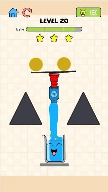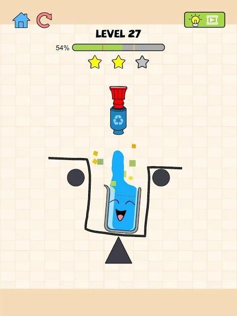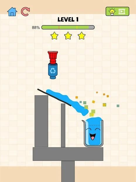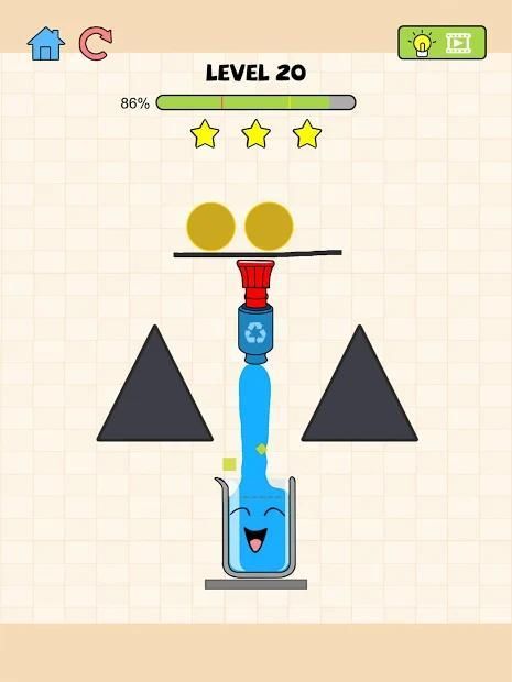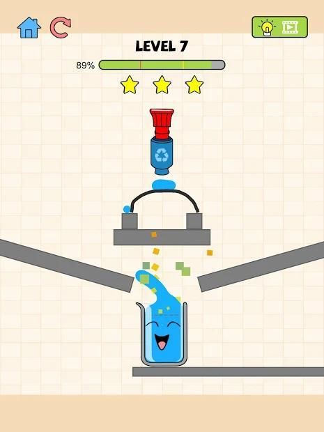 In each level, there is a sad cup. He is not happy since he is empty. Fill the cup and make him happy!