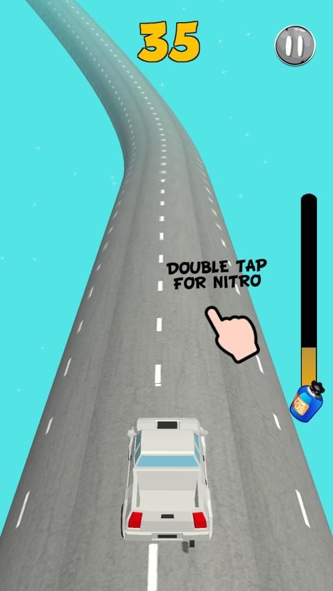 इस अंतहीन सड़क की सवारी में अन्य कारों को चकमा देते हुए शून्य के माध्यम से भागें। अविश्वसनीय गति तक पहुँचने के लिए लेन पर स्विच करने के लिए त्वरित और टैप करें!