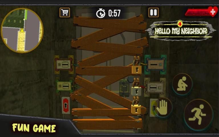 the secret neighbor keeps you locked in his the basement, Try to hide and seek your way to escape from the scary neighbor. Don't make any noise or scream Or even you say hello, You have to depend on the map in order to know where to find the key or tools In order to open the door and escape And knowing where there is The scary neighbor to avoid it so that it does not see you, You have to prohibit from the secret neighbor when he says hello hello do not answer him.