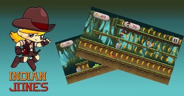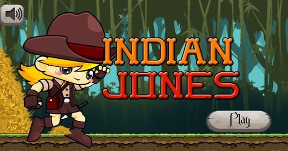 Indiane yones - एक कूद और एक क्लासिक खेल। जंगल में मुक्त चल रहा है खेल।