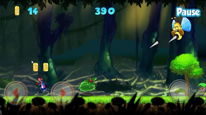 Control buttons to run, jump and explore the arcades. Travel across dangerous jungle, snow, cave, volcano, etc. Collect coins to help you defeat the Monster!