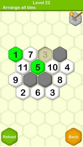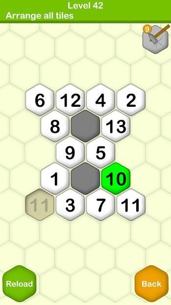 On the start a number of hexagon tiles are created and shuffled randomly, player rearrange all tiles and proceed to next level. The game uses the idea of basic number sorting game but in shape of hexagons. Hexa Puzzle level's become very challenging due to shape of tiles and obstacles.