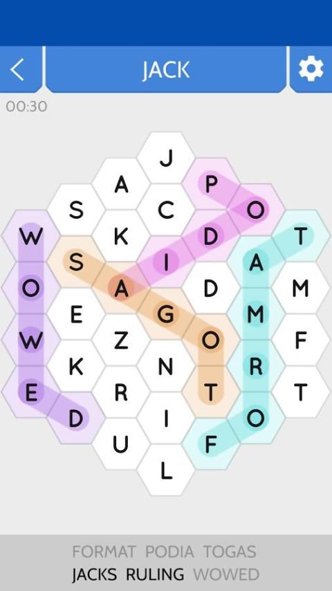 इस शब्द खोज खेल में, छिपा शब्द एक हेक्सागोनल ग्रिड पर बाहर रखी हैं और (अन्य शब्द खोज खेल में के रूप में नहीं एक सीधी रेखा में) किसी भी दिशा में जा सकते हैं।