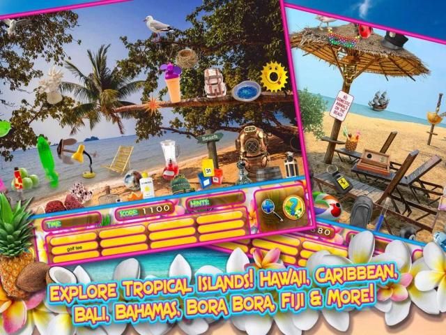 छिपे हुए वस्तुओं - द्वीप अवकाश एक खूबसूरती से शोध एवं 25+ उष्णकटिबंधीय समुद्र तट स्थलों के साथ खेल का पता लगाएं डिज़ाइन किया गया है! वस्तुओं के 100 के लगाने के लिए!