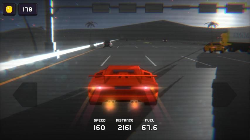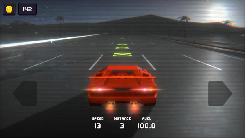 80 के दशक के माहौल के माध्यम से एक अंतहीन नियॉन राजमार्ग पर अपनी स्पोर्ट्स रेसिंग कार चलाएं