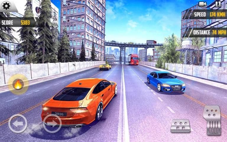 - सही ड्राइविंग भौतिकी के साथ ट्रैफिक रेसर शीघ्र कारें