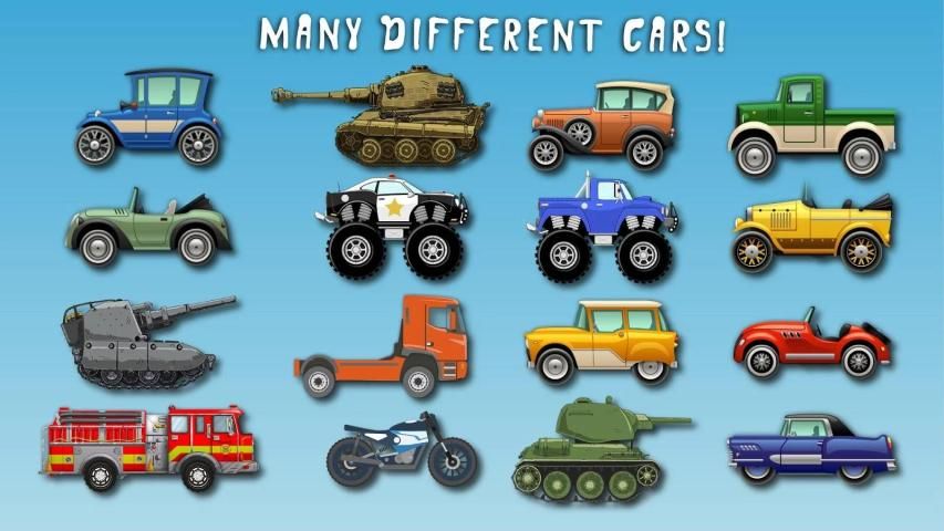 कई अलग-अलग वाहन: सेडान, बाइक, ट्रक, राक्षस ट्रकों, जीप, टैंक, फायर इंजन आदि।