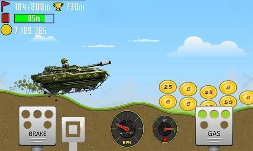Face the challenges of unique hill climbing environments with many different cars. Gain bonuses from daring tricks and collect coins to upgrade your car and reach even higher distances. Watch out though - Bill's stout neck is not what it used to be when he was a kid! And his good old gasoline crematorium will easily run out of fuel.