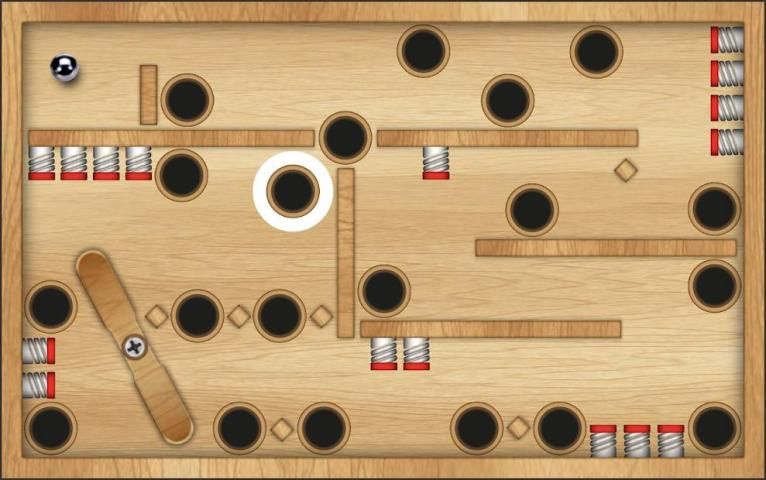Прокатите шарик от старта до финиша не провалившись в отверстия на игровом поле. Остерегайтесь отталкивающих и пружинящих объектов. Следите за вращающимися деталями.
