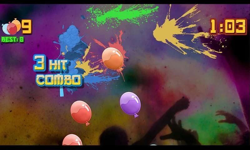 रंग के पागलपन की हद तक addicting खेल के इस होली विशेष का आनंद लें। के रूप में बहु रंग के गुब्बारे स्पॉन रखने के परीक्षण के लिए अपनी गति और स्वाइप कौशल रखो। बाधाओं और बम से बचने के लिए और केवल कटौती और गुब्बारे स्लेश अपने पागल निंजा क्षमताओं का उपयोग करें।