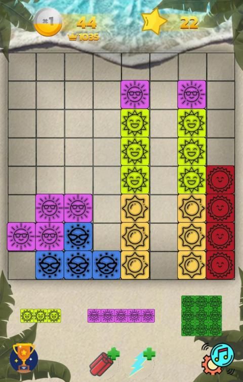 Holiday Block Puzzle - Easy, Funny and Relaxing... You are on holiday with the game.. Listen to bird sings, wave sound.. You are on the beach :)