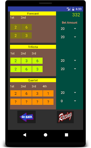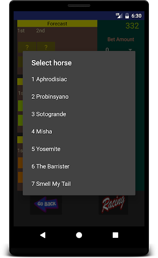 Online horse racing program with tips generated by computer. You can play around by betting on a horse using