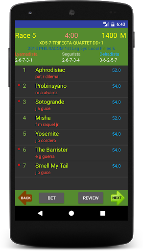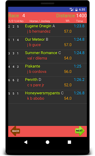 racing bettors in selecting which horse to bet. Best times of each of the running horses are also displayed.