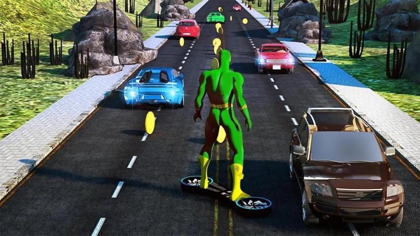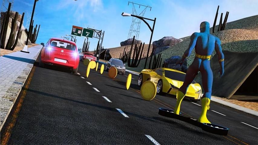Have a super fun with this freestyle amazing hoverboard game. Rush around the city and cool stunts with this free hoverboard game. Speed Racing and running on hoverboard. Hoverboard endless racing game on thrilling jungle, desert and city rush tracks. Speed Racing game on hoverboard frenzied running. Enjoy real hoverboard ride on skateboard around the city rush to reach at the max score. Run and rush fast as you can in city, desert and jungle run avoiding barriers and hurdles to get more coins and score. Avoid the passing and racing cars to go far. Control the hoverboard balance and speed of the hoverboard to cover max distance. Show some extreme and crazy stunts in this amazing hoverboard game that gives you more excitement and fun while play this amazing free simulation game. Become a stunt master be cool stunts and hoverboard master. Run through the heavy traffic and collect coins as you can. Jump over the barriers and car otherwise it’s over. Best hoverboard game to make more fun and adventure ride. Speedy and fast ride on hoverboard.
