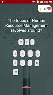 In Human Resources(HR) Quiz Hard Quiz there is no multiple option to choose there is shuffled characters to answer them.